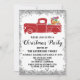 Celebra la temporada navideña con este camión vintage rojo festivo con regalos invitación para fiesta de Navidad. Los detalles de la fiesta están escritos en una tipografía de escritura negra audaz y caprichosa con un borde de brillo de plata y fondo blanco. Esta invitación es perfecta para una fiesta de Navidad / invierno!