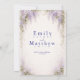 Invite your guests to a romantic, Regency-inspired celebration with this elegant wisteria wedding invitation. Soft lavender watercolor wisteria drapes across the top corners with delicate floral accents at the base, framing a large clean center space for your custom wording. This design is ideal for garden weddings, afternoon tea receptions, spring and summer ceremonies, and vintage-inspired bridal events. Part of the Bridgerton Bridal collection, it pairs beautifully with matching RSVP cards, details cards, save the dates, menus, place cards, and thank you notes for a cohesive wedding stationery set.