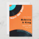 Registro de vinilo retro de 80's Foto Guardar la plantilla de invitación de fecha, naranja de vintage en negrita guardar la fecha.