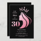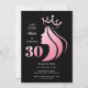 Invitación Reina corona Purpurina rosa negro 30 cumpleaños