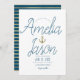 Invitaciones minimalistas a la Boda Azul y Blanca - Faux Relieve metalizado Anchor y franjas de fondo