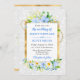 Invitación Relieve metalizado dorado de mareas y flores azule