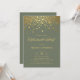 Invite a la familia y amigos con esta moderna y elegante invitación a la fiesta de retiro. Se presenta un confetti de Relieve metalizado de oro falso sobre un fondo azul marino. Este diseño está disponible en otros colores. Personalice agregando los detalles del evento. Esta invitación a la fiesta de retiro verde taupe es perfecta para cualquier tema de evento o temporada. Tenga en cuenta que no habrá ningún Relieve metalizado real en la invitación.