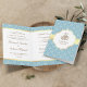 Invitación Relieve metalizado dorado falso luz azul Damasco B