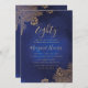 Invitación Relieve metalizado dorado Lace Ornate Blue 80th Oc