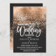 Esta moda y la glamorosa Invitación a la Boda es un diseño moderno y de moda con un gradiente oscuro abstracto de confeti con Relieve metalizado de oro de imitación y con forma de imitación sobre un fondo negro. Es perfecto para una pareja de novios moderna y elegante, con su sencilla huella de bonito y su artística tipografía de personalizado de pinceles blancos. Personalizar el color del texto y el fondo haciendo clic en el botón "personalizar". ***NOTA DE DISEÑO IMPORTANTE: Para cualquier solicitud de diseño personalizado, como solicitudes de productos coincidentes, cambios de color, cambios de posición o cualquier otra solicitud de cambio, haga clic en el botón "CONTACTO" o envíe un correo electrónico al diseñador directamente a lafemme.art@gmail.com. Incluso puede enviarle un correo electrónico solicitando un diseño completamente personalizado y nuevo.