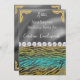 Una elegante Invitación de cumpleaños sorpresa con oro y plata. Impresión verde azulada de cebra purpurina con colores verde claro y verde dorado y decoración con diamantes brillantes.