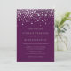 Invite a los invitados a su evento con esta invitación a la boda de personalizable. En él se pueden ver los falsos puntos de Relieve metalizado plateado sobre un fondo morado. Son perfectas para cualquier tipo de boda o temporada. Los elementos coincidentes están disponibles.
