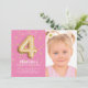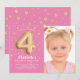 Invitación Relieve metalizado rosa Foto de globo de 4º cumple
