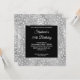 Crea tu propia elegante y elegante invitación de celebración de cumpleaños en forma de cuadrado de hito. Decorativo purpurina brillante de plata brillante y fondo de diseño gráfico del leopardo del Relieve metalizado. Un Relieve metalizado oscuro metalizado cuadrado y gris plateado coordinado y un overlay negro para la información de la invitación. Personalizar los estilos de fuente blancos, color y tamaño. El lujoso y moderno Relieve metalizado purpurinoso se ha creado con elementos de arte digital que se imprimen como una foto. Fabuloso cumpleaños de safari para niñas invitan a tu mejor amigo.