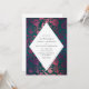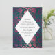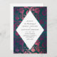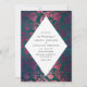 Impresionante invitación de boda verde azulada y borgoña con acentos de color rosa.