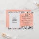 Esta invitación para el 35º aniversario de boda presenta un patrón de damasco negro y ondulado como fondo, y una franja de coral ondulada en el centro y un marco de foto personalizable. El texto personalizable le permite agregar los detalles de su invitación.