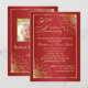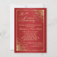 Adorno dorado con remolinos en fondo degradado rojo oscuro para invitación de aniversario de bodas de 50 años. En la parte posterior, puede agregar su propia foto e información personal.
