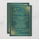 Adorno dorado en espiral sobre fondo degradado de azul verde Invitación de Aniversario de Boda 50º
