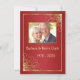 Ornamento dorado en espiral sobre fondo degradado rojo oscuro para invitación de aniversario de bodas número 50. En la parte posterior - puede agregar su propia foto e información personal.