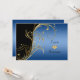 Invitación Remolinos Florales Dorados en Azul y Negro Recepci