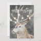 Una serena obra de arte de tela en imitación de un reno en la nieve de invierno con luces brillantes en sus cuernos, y feliz Navidad con un guion. Una elegante pieza moderna para tu pared, o manto.