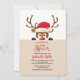 Un simpático reno con la invitación del sombrero de Santa destacado para una fiesta de bebé de vacaciones, pero adecuado para cualquier celebración navideña. (<a href='https://www.freepik.com/free-vector/reindeer-in-santa-hat-peeping-out_1430479.htm'>Diseñado por Katemangostar</a>). <br/><br/>La tarjeta es fácil de personalizar con su redacción, fuente y color de fuente.<br/><br/>¿No es exactamente lo que estás buscando? Todos nuestros productos pueden ser diseñados a medida para satisfacer sus necesidades sin cargo adicional.<br/><br/>Simplemente contáctenos en askcottonlamb@gmail.com.<br/><br/>Productos coordinados disponibles: ¡Solo pregúntanos!