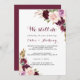 Esta invitación a renovar la promesa floral de borgoña verde es perfecta para una ceremonia rústica de renovación y celebración. El diseño presenta elegantes ramos de flores verdes, ruidosas, violetas, rojas y burdeos, inspiradores de la belleza natural.