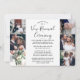 Invite a familiares y amigos a presenciar cómo dice "sí, acepto" de nuevo con una elegante invitación moderna de renovación de votos con collage de 7 fotos. Todo el texto es fácil de personalizar para cualquier tipo de celebración de matrimonio, como una boda secuela o recepción de aniversario. Personalice con los detalles que desee, incluyendo fecha de matrimonio, RSVP, código de vestimenta, sitio web, etc. (CONSEJO DE COLOCACIÓN DE IMAGEN: Una forma fácil de centrar una foto exactamente como la desea es recortarla antes de subirla al sitio web de Zazzle). El diseño moderno minimalista en negro y blanco presenta siete fotos de la pareja, caligrafía de letra manuscrita de moda y tipografía de estilo máquina de escribir chic. Ya sea que se hayan escapado debido a la pandemia de COVID o se hayan reducido a una boda más pequeña y más íntima, la fiesta del "felices para siempre" aún puede comenzar