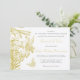 Exquisitas invitaciones para renovar o reafirmar los votos matrimoniales con motivo del aniversario de bodas de oro con lirios de mariposas en elegante dorado (no tinta metálica).