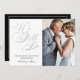 Invitaciones para renovar votos de aniversario de boda con tipografía de letra elegante y moderna en hoja de plata falsa chic. La parte trasera tiene un marco de hoja de plata lujosa y espacio amplio para su texto. Agregue fácilmente su propia foto y detalles para una invitación impresionante. ¡Ideal para aniversarios de 25 años de plata y más!