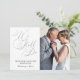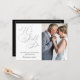 Invitaciones fotográficas elegantes para la renovación de votos de aniversario de boda con tipografía de guión elegante en lámina de plata moderna y falsa. La parte trasera tiene un marco de lámina de plata lujosa y mucho espacio para su texto. Agregue fácilmente su propia foto y detalles para una invitación impresionante. ¡Ideal para aniversarios de plata de 25 años y más!