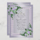 Fondo de aniversario de bodas de plata renovación de votos Lavanda con esquinas florales y marco de cinta de gingham y encaje.
