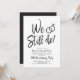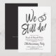 Una divertida y única invitación con letra de guión adaptada específicamente para una fiesta de aniversario o renovación de votos de matrimonio. Cuenta con las palabras "Todavía lo hacemos" con anillos de boda descansando encima. Debajo de esto hay espacio para los detalles de su fiesta o evento único.