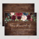 Invitación de renovación de votos de vino tinto burgundy de madera rústica de granero