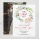 Con una delicada guirnalda de vegetación floral en acuarela, esta elegante invitación botánica para renovar votos por el 40 aniversario de boda se puede personalizar con la información de su aniversario especial. El reverso presenta su foto especial. Diseñado por Thisisnotme©