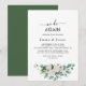 Celebra tu amor con esta elegante y rústica invitación de renovación de votos. Con hojas de acuarela verde oscuro y eucalipto, este diseño captura una vibra bohemio moderna del bosque. Perfecto para una ceremonia inspirada en la naturaleza, establece un tono sofisticado y romántico para tu celebración especial.