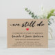 Invitación simple de renovación de votos de textura de icono Kraft elegante. Este diseño presenta el texto de caligrafía 'aún lo hacemos' y detalles de celebración en un fondo Kraft. Tenga en cuenta que la invitación no se imprime en papel de manualidades real, sino en un gráfico hecho para parecerse al papel Kraft.