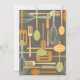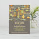 En esta encantadora invitación a una ducha nupcial para la futura novia, se incluyen utensilios de cocina y comida de estilo retro. La combinación de colores es divertida y neutra con tenedores, cucharas, cuchillos, espátulas y susurros en tonos de madera, oro, marrón y verde sabio, colocados sobre un fondo marrón de mocha bonito.