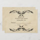 Esta es una tarjeta de respuesta con estilo vintage de remolinos decorativos y marco de florituras. Este diseño de tarjeta postal de respuesta de boda elegante inspirado en el vintage. Fondo texturizado rústico antiguo con diseño negro. Personalice el texto personalizado con la fecha límite de respuesta y la dirección de respuesta en la parte posterior de la tarjeta.