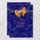 Esta hermosa invitación plana con plantillas personalizables es ideal para sus invitados como tarjeta de respuesta o confirmación de asistencia. DISEÑO - Una elegante cinta de satén falsa naranja con una gema dorada y azul marino está colocada sobre una cinta azul rodeada de un suave patrón floral "apenas visible". PERSONALÍZALA - Utilice el botón "personalizar" para cambiar el tamaño, estilo y color de la fuente; para agregar o eliminar plantillas o para subir sus propios gráficos y fotos. GAMA DE PRODUCTOS COINCIDENTES - Desplácese hacia abajo para ver la gama completa de artículos de esta colección exclusiva. SOLICITUDES PERSONALIZADAS - Para obtener ayuda, cambios de color o diseños personalizados, contácteme en clientrequestrw@gmail.com