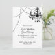 Una hermosa lámpara de araña de cristal acentúa esta gran invitación sobre un fondo blanco clásico, lo que lo convierte en el lugar perfecto para un nuevo restaurante, un nuevo salón de belleza o cualquier tienda o negocio nuevo. Si se necesita ayuda para personalizar esta invitación, o si se necesitan elementos de coordinación adicionales, simplemente contáctenos a prettyfancyinites@gmail.com con su solicitud.
