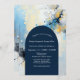 Invitación Resumen boda de ilustraciones de tinta azul y dora