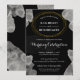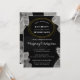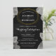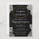 Tarjetas minimalistas de invitación para bodas modernas y sencillas para su ocasión especial. Con un marco de círculo geométrico alrededor del nombre de la novia y del novio con un borde de diseño abstracto de acuarela de color blanco gris en fondo negro. Personalizar los detalles de su boda, fecha, lugar y más en la parte delantera.