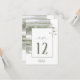 Una pintura pinta una acuarela en tonos brillantes de verde oliva con toques de lavanda que acentúan las piezas de esta hermosa suite boda. La tarjeta número de tabla boda que se muestra aquí también incluye una caligrafía escrita a mano elegante y una plantilla para añadir fácilmente sus propios nombres y fecha de boda. Busque ID886 para ver otras piezas y opciones de color para este conjunto.