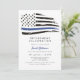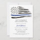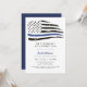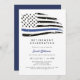 Esta invitación a la fiesta de retiro incluye una bandera de la línea azul delgada con una acuarela angustiada y un diseño simple y neutro. Esta invitación se puede usar para celebrar a los primeros respondedores de la policía así como al personal de la marina o de la fuerza aérea.