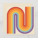This artwork channels a retro graphic spirit, forming the letter‑like curve with parallel bands of red, orange, yellow, light blue, teal, and purple. The layered arcs flow in harmony, evoking the bold optimism of 1970s design. Set against a soft beige background, the vibrant rainbow palette stands out with clarity and rhythm. The composition balances simplicity and dynamism, creating a timeless visual that feels both nostalgic and modern.