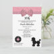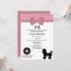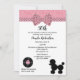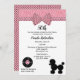 Whimsical retro 50s themed birthday party invitation done in white, with pink and black polka dot accents and graphics of a black poodle and LP record and polka dot bow. Personalize all the text to suit your party needs. Perfect for her 50th birthday party.