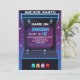 Level up the fun with this retro arcade birthday invitation! Featuring a vintage video game machine in black, blue, and purple with the phrase “Arcade Party Game On”, this design is perfect for kids who love gaming. A nostalgic yet modern look for your boy’s birthday party.