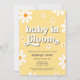 Esta invitación a la ducha de bebé tiene un tipo de letra retro y se ofrecen días para invitar a familiares y amigos a su ducha de bebé.