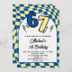 Invitación Retro Blue Yellow Checkered 6 7 Boy 7th Birthday
