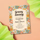 Flor de grava retro verde, marrón y melocotón patrón sin costura Invitación de cumpleaños. Este diseño divertido y vibrante es perfecto para todo aquel que desee añadir un toque de estilo retro a su día especial. Con sus colores llamativos y su estampado floral, esta invitación seguramente marcará el tono para una celebración memorable.
