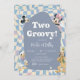 Invitación Retro checkerboard "Two Groovy" 2nd birthday