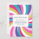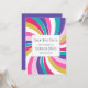 Invitación a la boda vibrante y colorida con giro circular retro. Esta tarjeta se puede editar fácilmente con su texto personal.