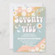 Celebrate in groovy style with this retro 70th birthday invitation featuring pastel wavy stripes, peace signs, daisies, butterflies, and a playful vintage font. Perfect for milestone celebrations, this hippie-inspired design blends nostalgia with modern charm, making it ideal for family gatherings, parties, and keepsakes. Customize with your event details to create a unique, eye-catching invitation that guests will love.